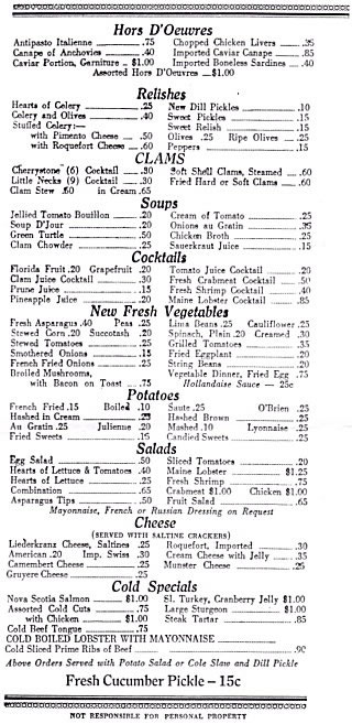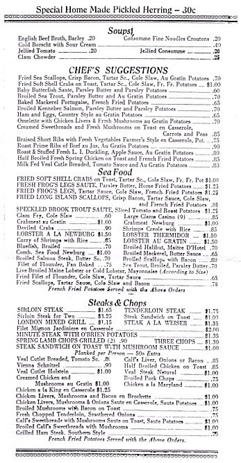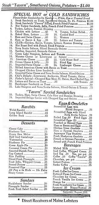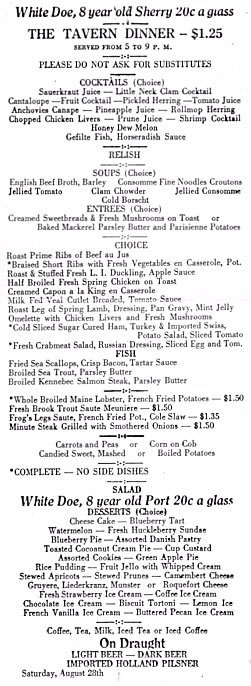 An Early Tavern Menu